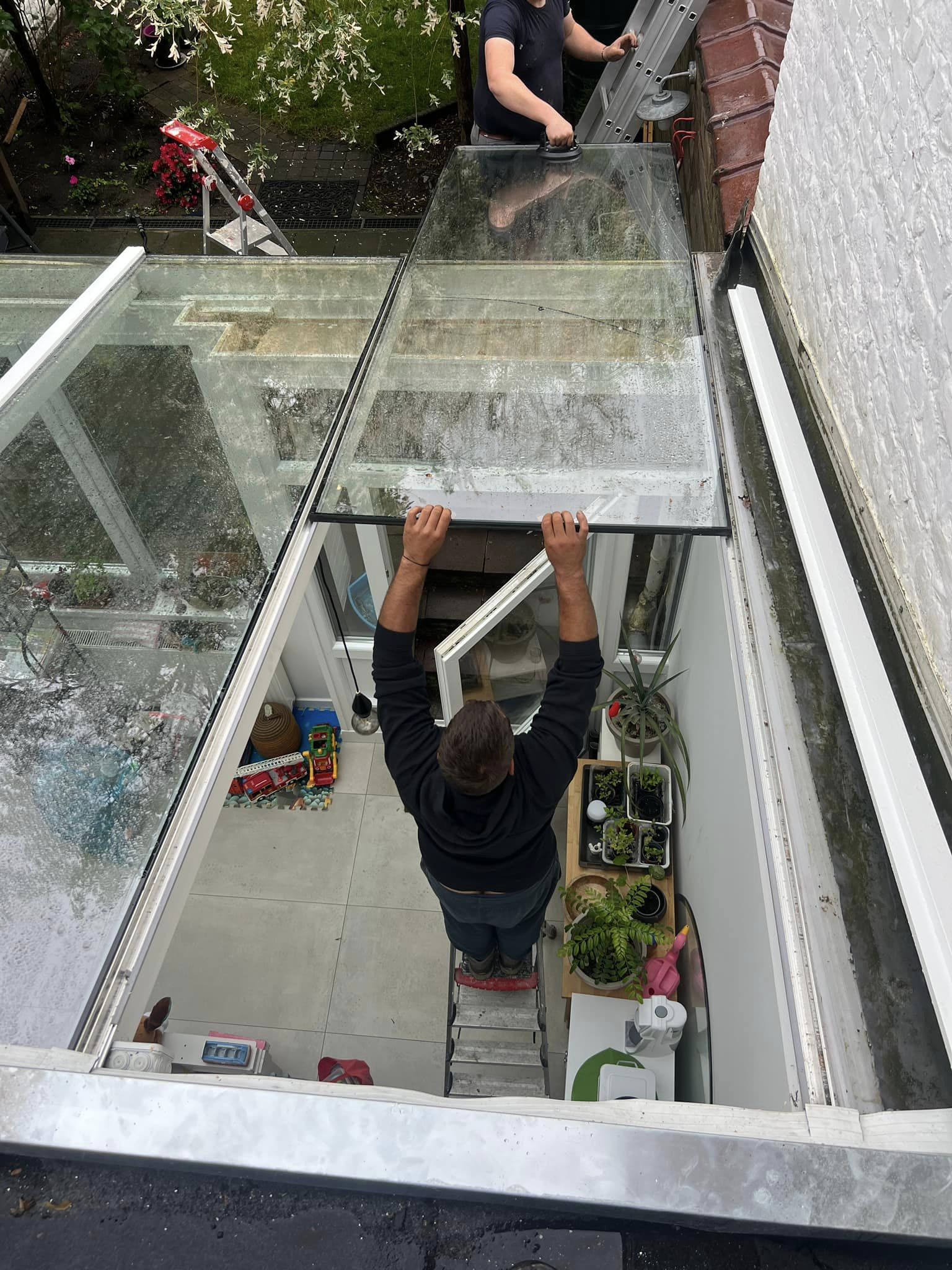 Chantier à 1000 Bruxelles: Fourniture / Installation des nouvelles double vitrages verre sécurité en place des Plexiglas